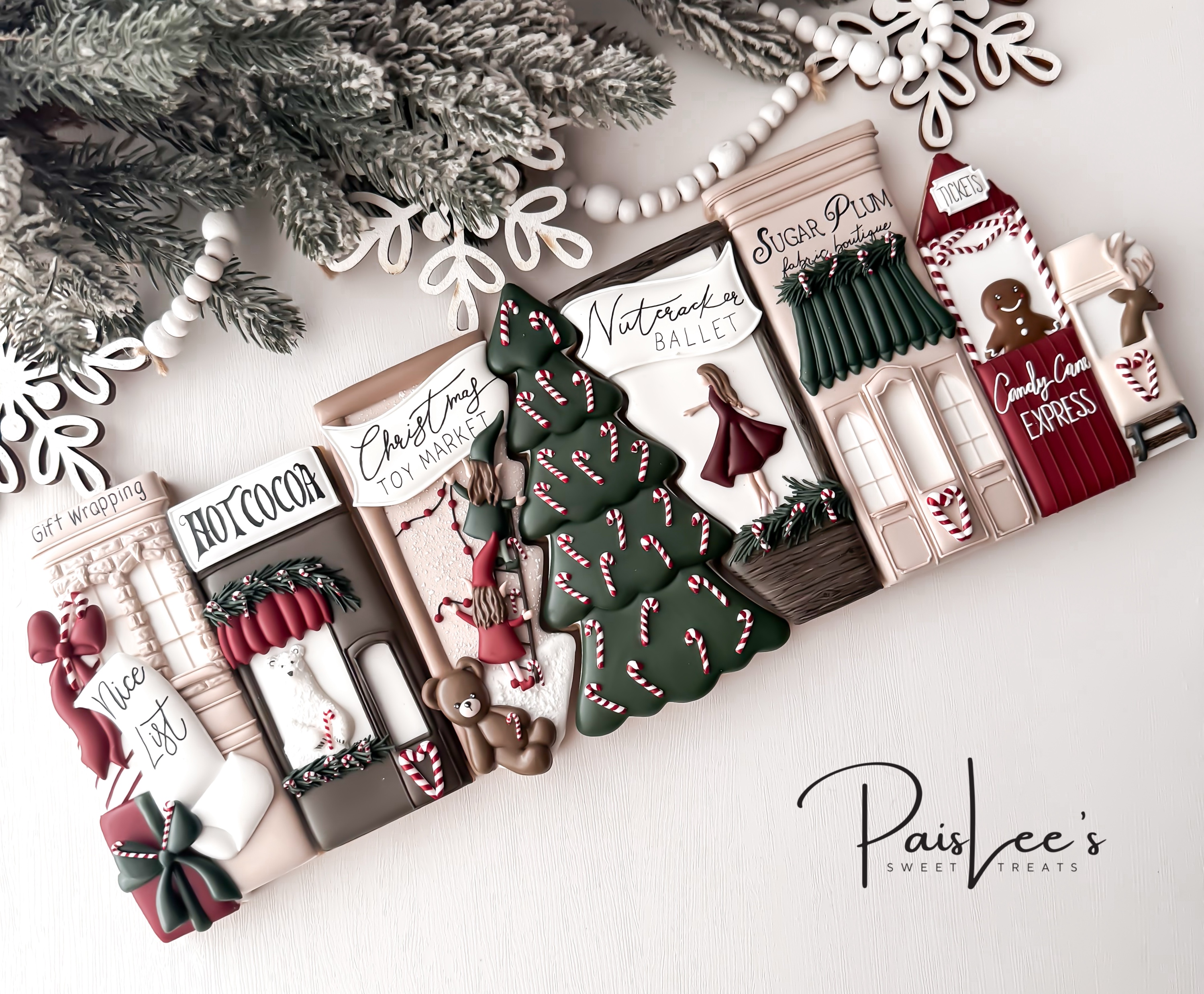 Introducing Candy Cane Village, a delightful cookie experience that celebrates the magic of Christmas! Indulge in a delectable journey through seven enchanting villages, each bursting with whimsical designs. From the cozy Giftwrapping Village to the enchanting Candy Cane Express, this collection invites you to immerse yourself in the wonder of the holiday season. Discover the joy of baking!