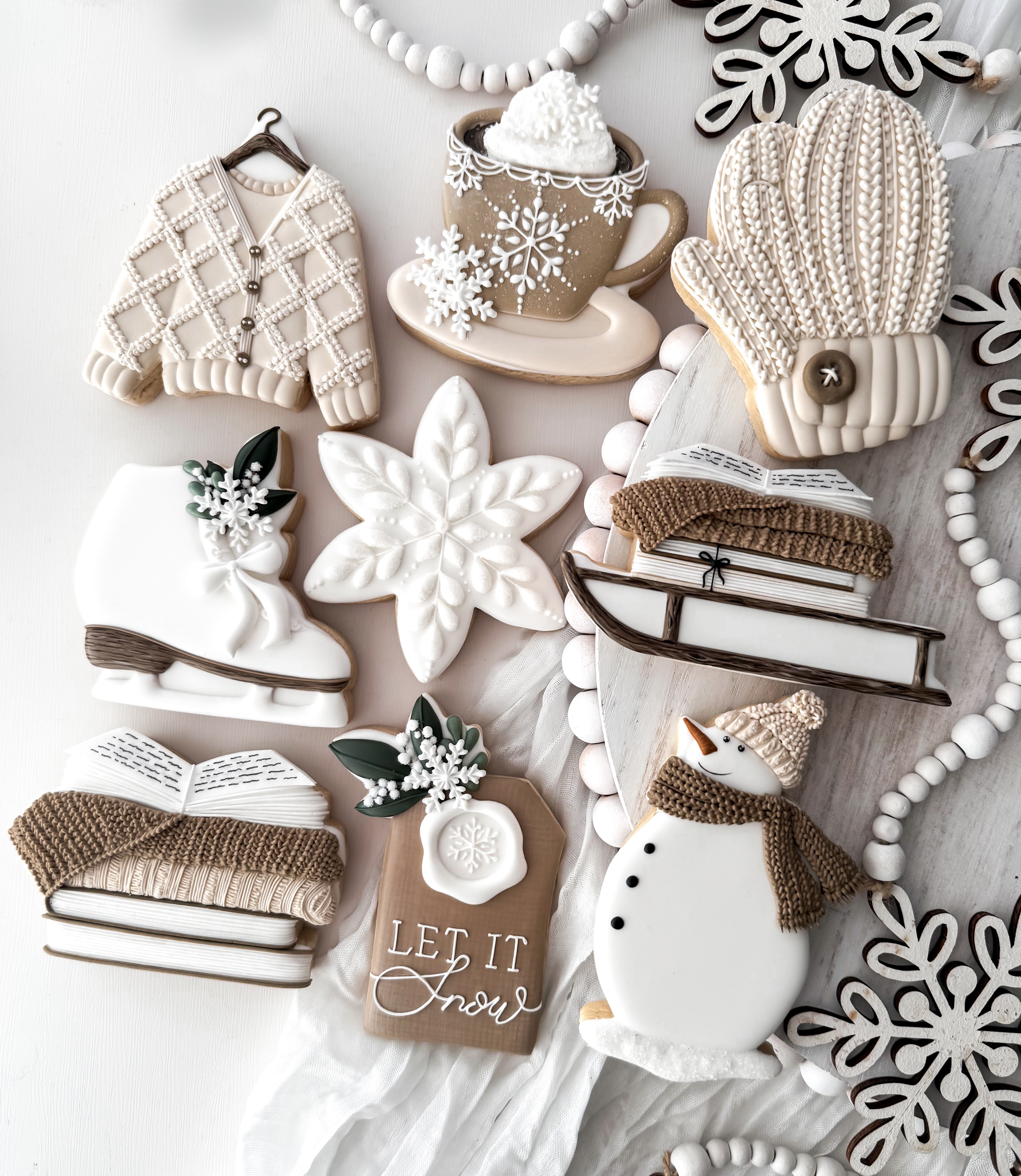 Join me a cozy Christmas-themed cookie class where holiday magic meets delicious creativity! We'll craft delightful treats inspired by festive icons: mugs of hot cocoa, swirling snowflakes, cheerful snowmen, and whimsical ice skates. Picture books and blankets evoke cozy nights, while a sled adorned with books and a warm cardigan add a charming touch. Perfect for bundling up and celebrating the season—cookie style!