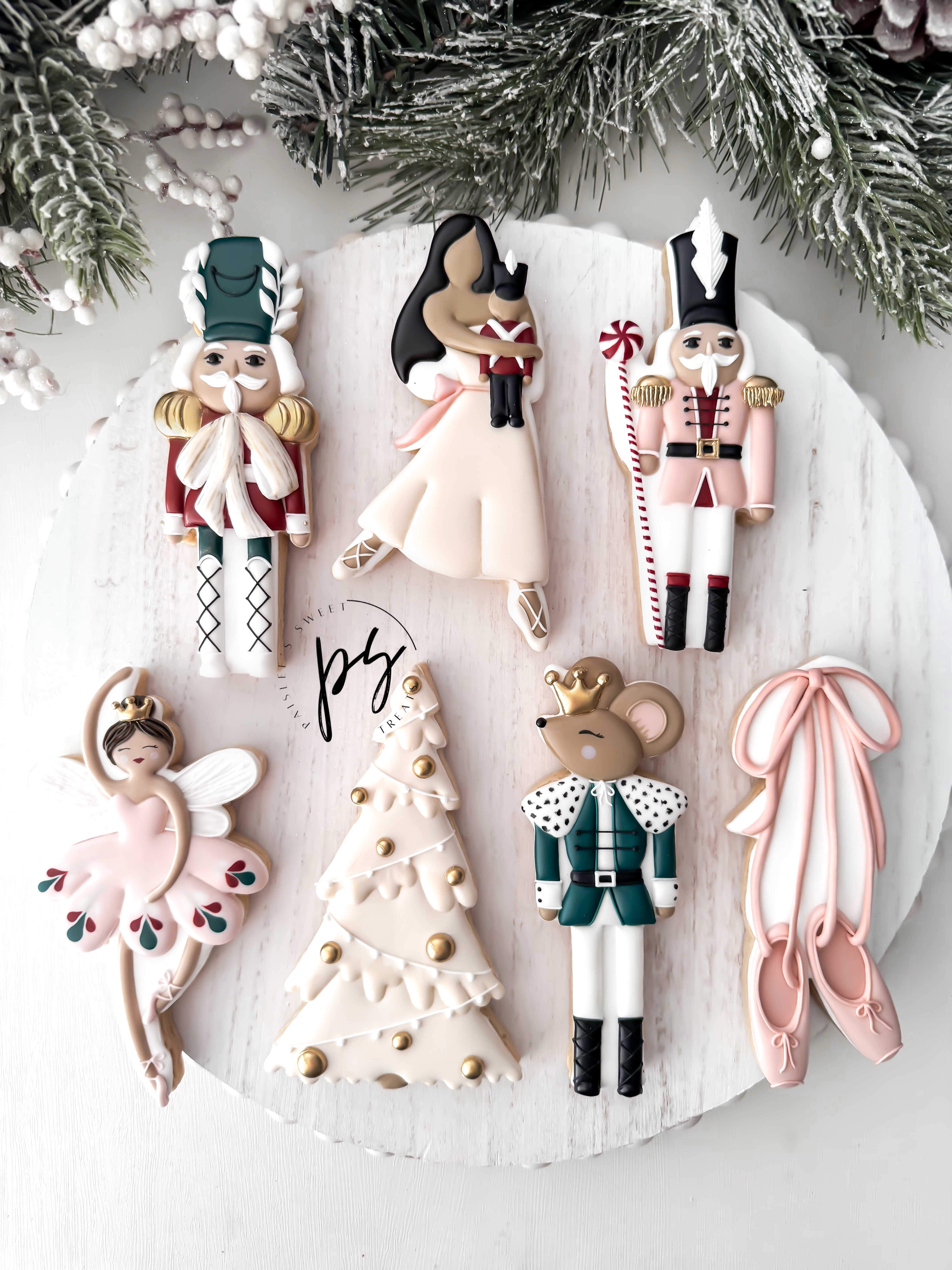 Welcome to the enchanting world of the Nutcracker & bring them to life! Craft intricately detailed cookies featuring all your favorites: majestic nutcrackers, graceful ballerinas, delicate ballerina slippers, a stunning Christmas tree, and the mischievous Nutcracker Mouse. Perfect for baking enthusiasts and holiday lovers alike, this class promises creativity, fun, and a touch of magic to your cookie creations!