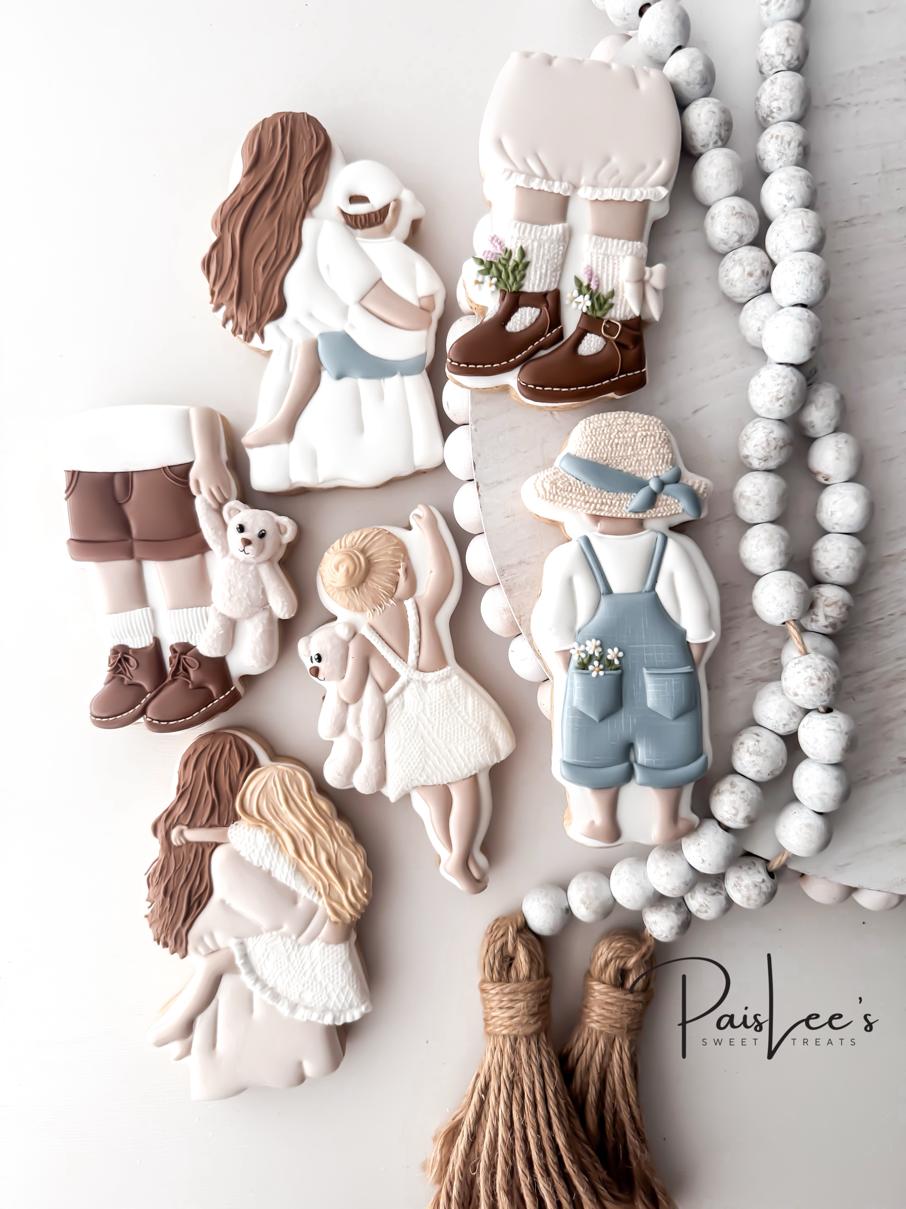 Welcome to the Precious Mother’s Day Cookie Class! In this sweet & heartwarming set, you’ll learn to create beautiful cookies featuring a mama with her son and daughter, baby girl & boy shoe designs, a little girl & boy with teddy bears, & a charming boy in denim overalls & a straw hat. This class is full of fun techniques, including lace details, basket weaving, & realistic hair to bring each design to life.